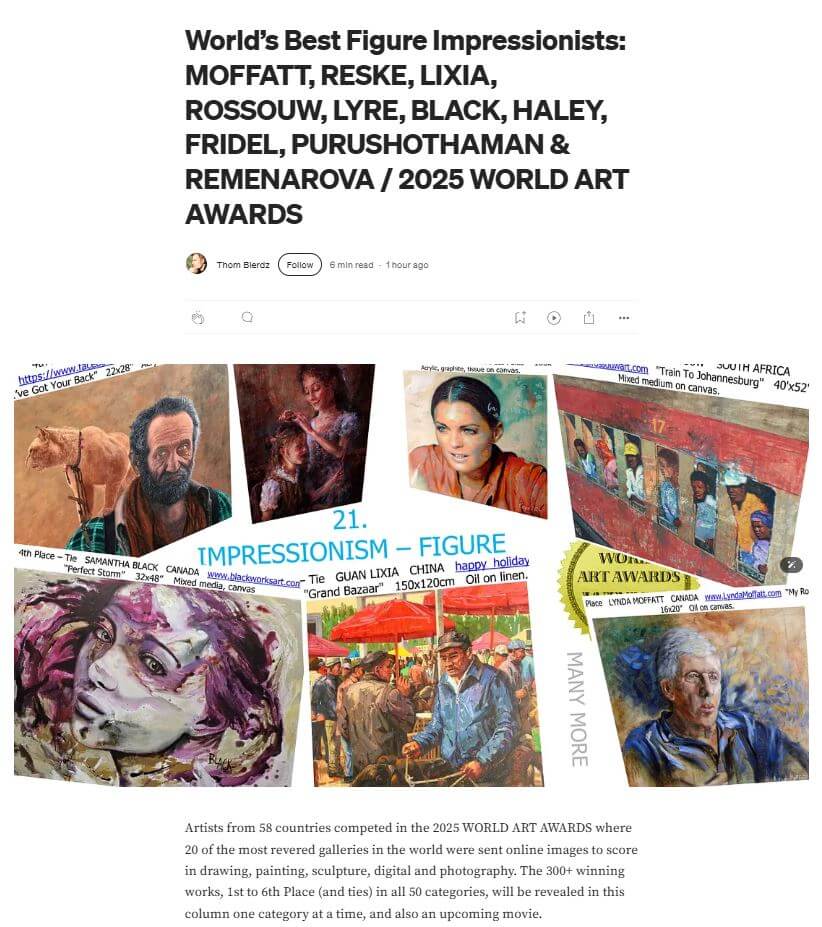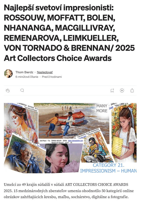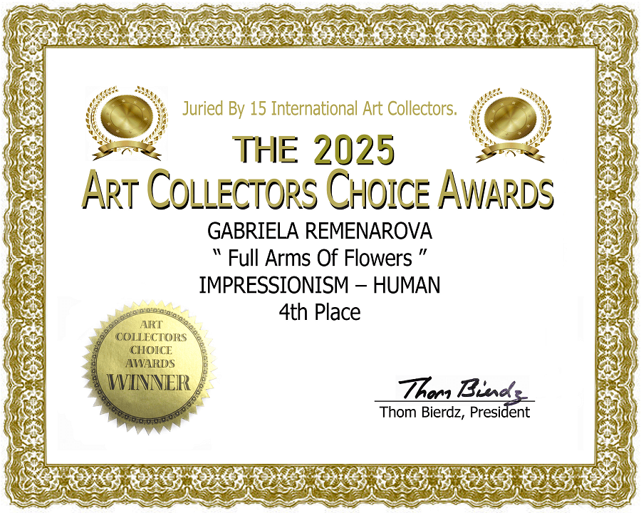 THE 2025 ART COLLECTORS CHOICE AWARDS (Cena výberu zberateľov umenia 2025) CATEGORY IMPRESSIONISM – HUMAN, 4. miesto za obraz „Full Arms Of Flowers“